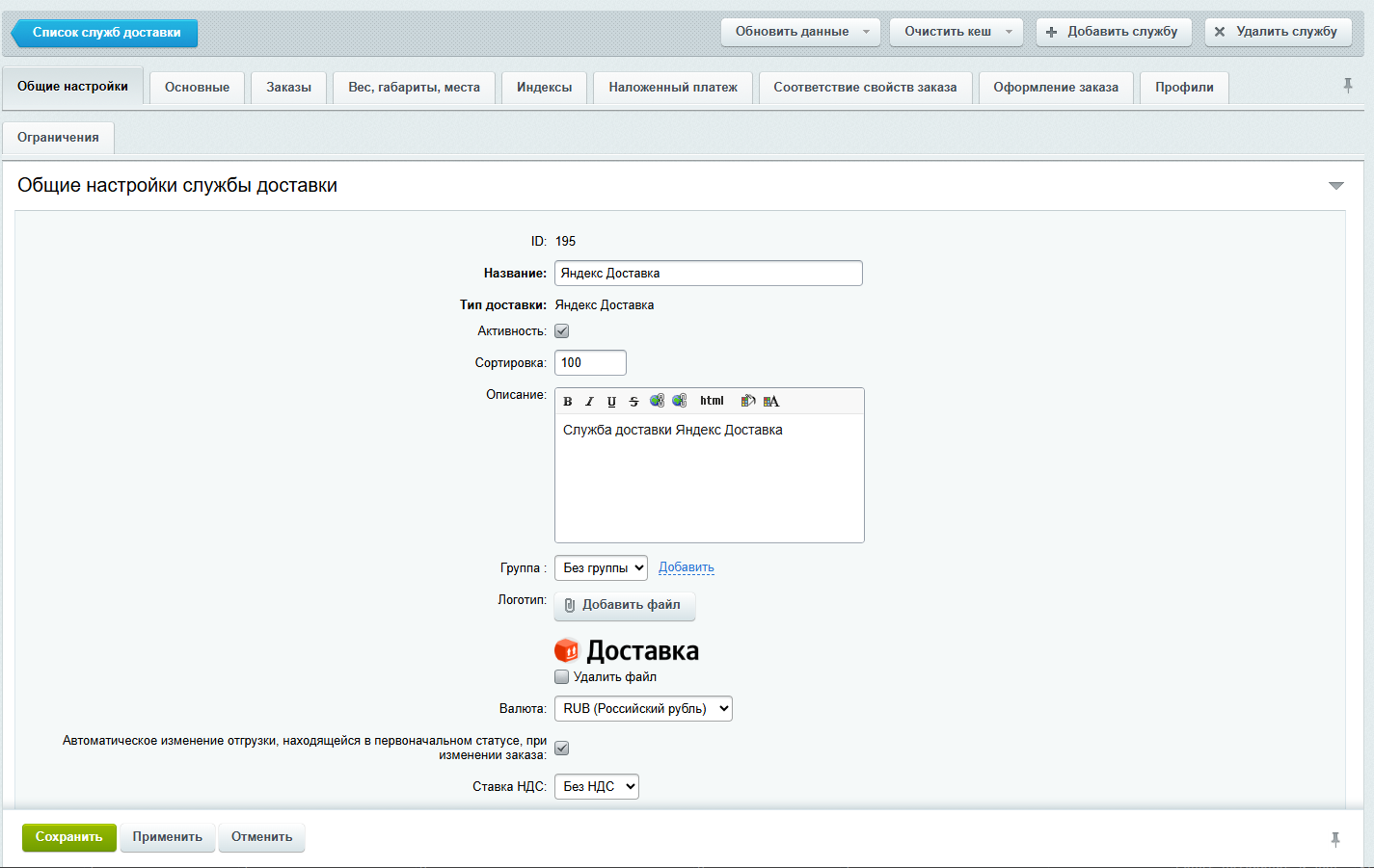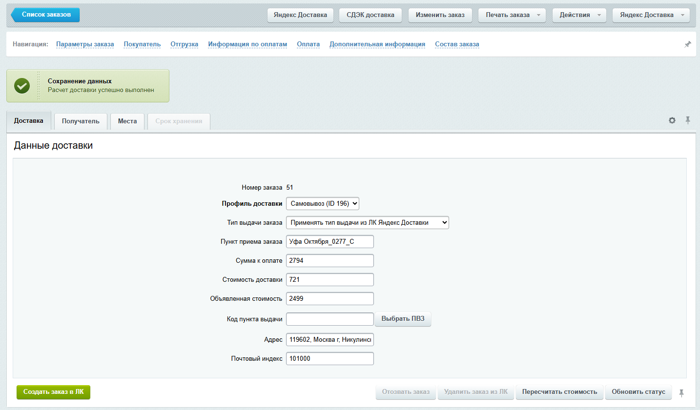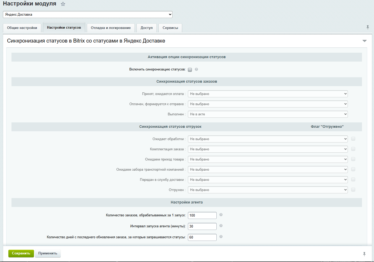 - синхронизация статусов заказов и отгрузок со статусами Яндекс Доставки