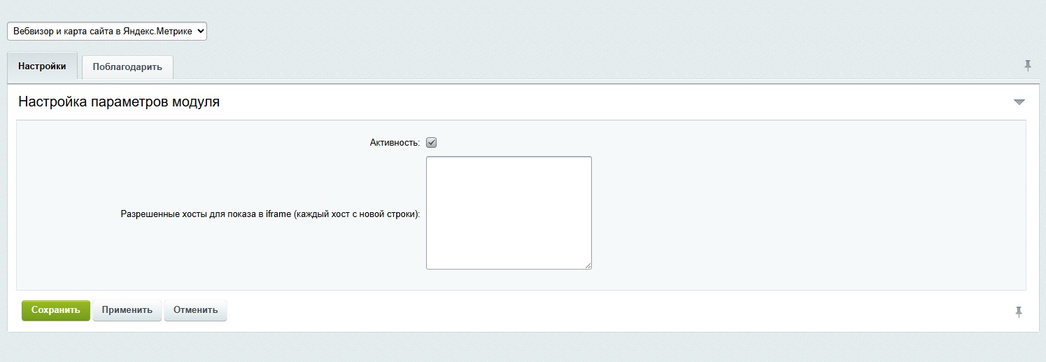 Также помощью модуля вы можете указать свой список доверенных хостов (сайтов), а по умолчанию модуль разрешает показ вашего сайта для Яндекс.Метрики в разделах: