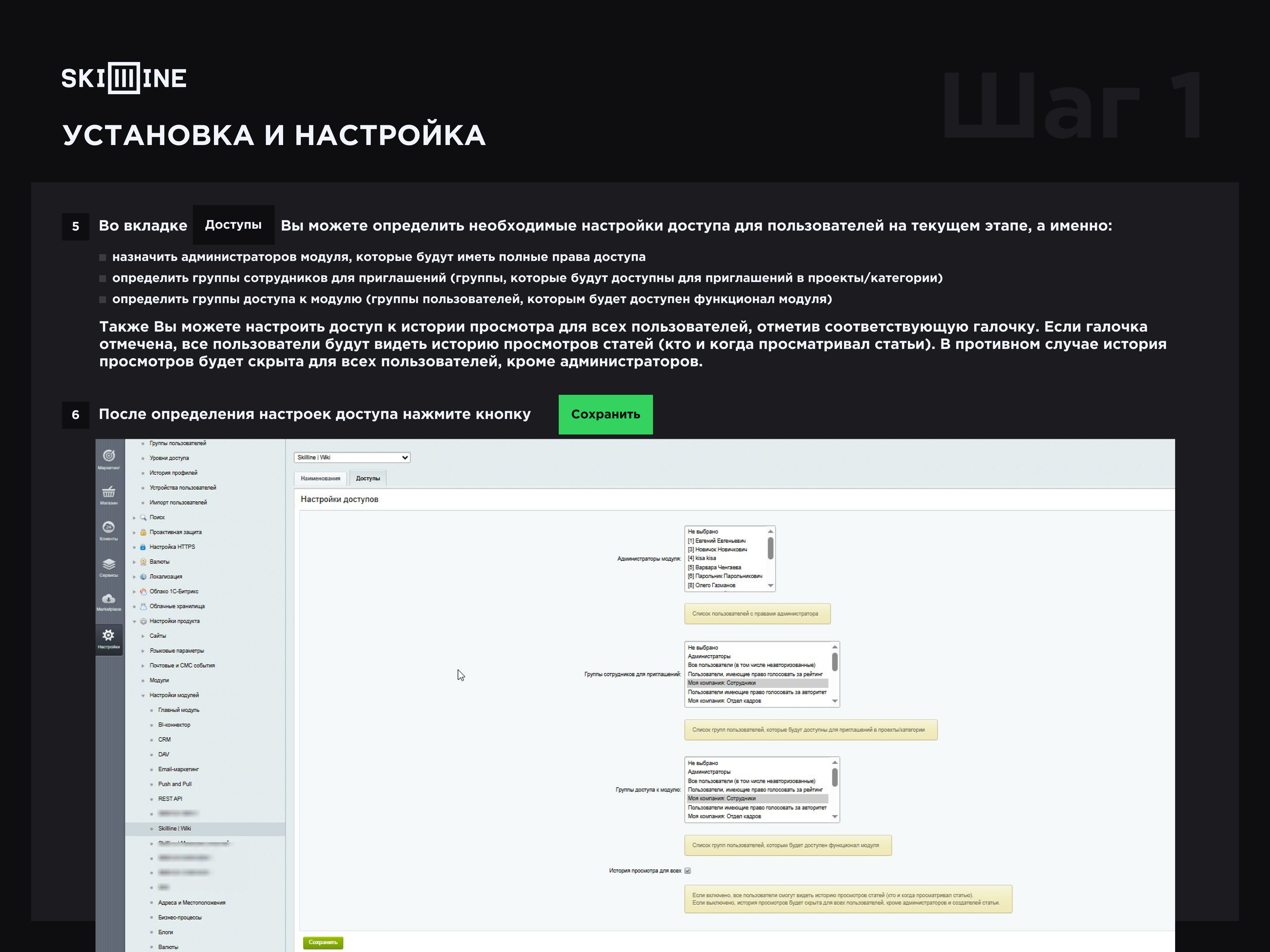 назначить администраторов модуля, которые будут иметь полные права доступа;