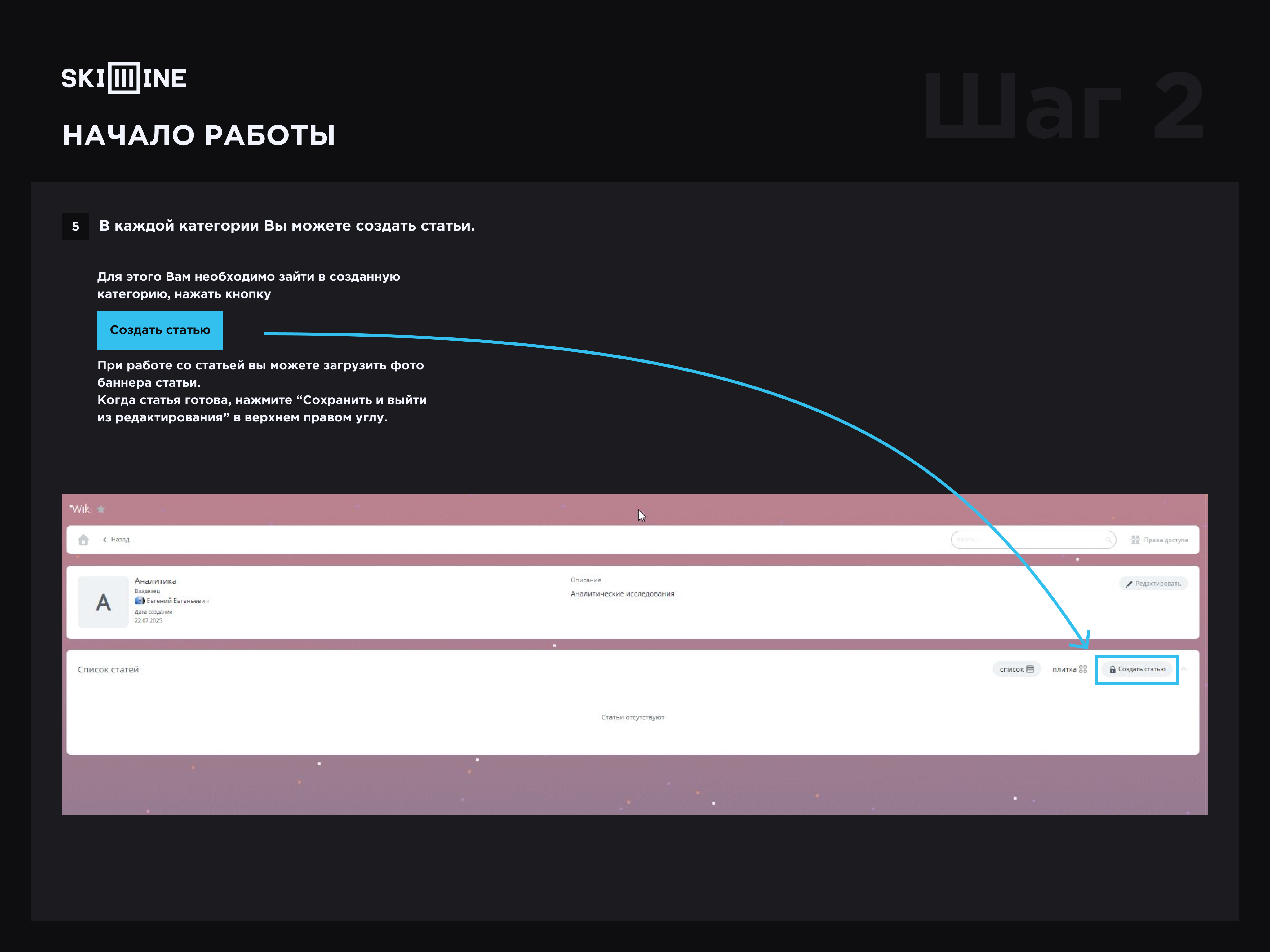 5. В каждой категории Вы можете создать статьи. Для этого Вам необходимо зайти в созданную категорию, нажать кнопку “Создать статью”.
